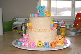 One of my friend ordered a surprise baby shower cake for her friend. Since the mom going to be don't know its a boy or a girl we tried to include all colors. The bottom layer of the cake was a 8' devils food cake filled with a vanilla butter cream and covered in a marshmallow fondant. And the top layer was a 6'' vanilla cake filled with chocolate whipped cream and covered in a marshmallow fondant. All animals and blocks were made out of modeling chocolate. Will soon try to upload a new post on making modeling chocolate, animals and marshmallow fondant.
